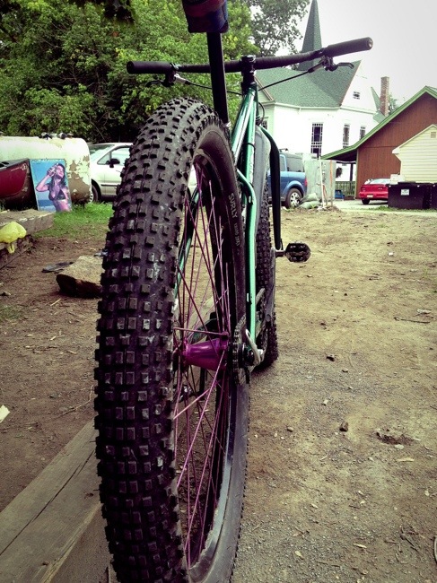 Earlier this year, I set my Kona Honzo up with the fat front end from my Pugsley. I rode it like that for two weeks in Pisgah, and a few hundred miles around Ohiopyle. It was cool, and felt like riding a basketball. The front end of the bike would bounce all over the place, and when I had to corner, I would just hope that it would bounce into a spot on the dirt where the front tire could stick.