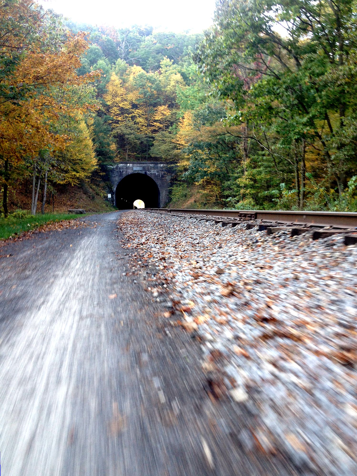 Once the trail got farther out of Pittsburgh, and away from all the little coal patch towns, things started to look a little cleaner. We spent the first night at the company lodge. Ohiopyle is way down in the misty valley below: