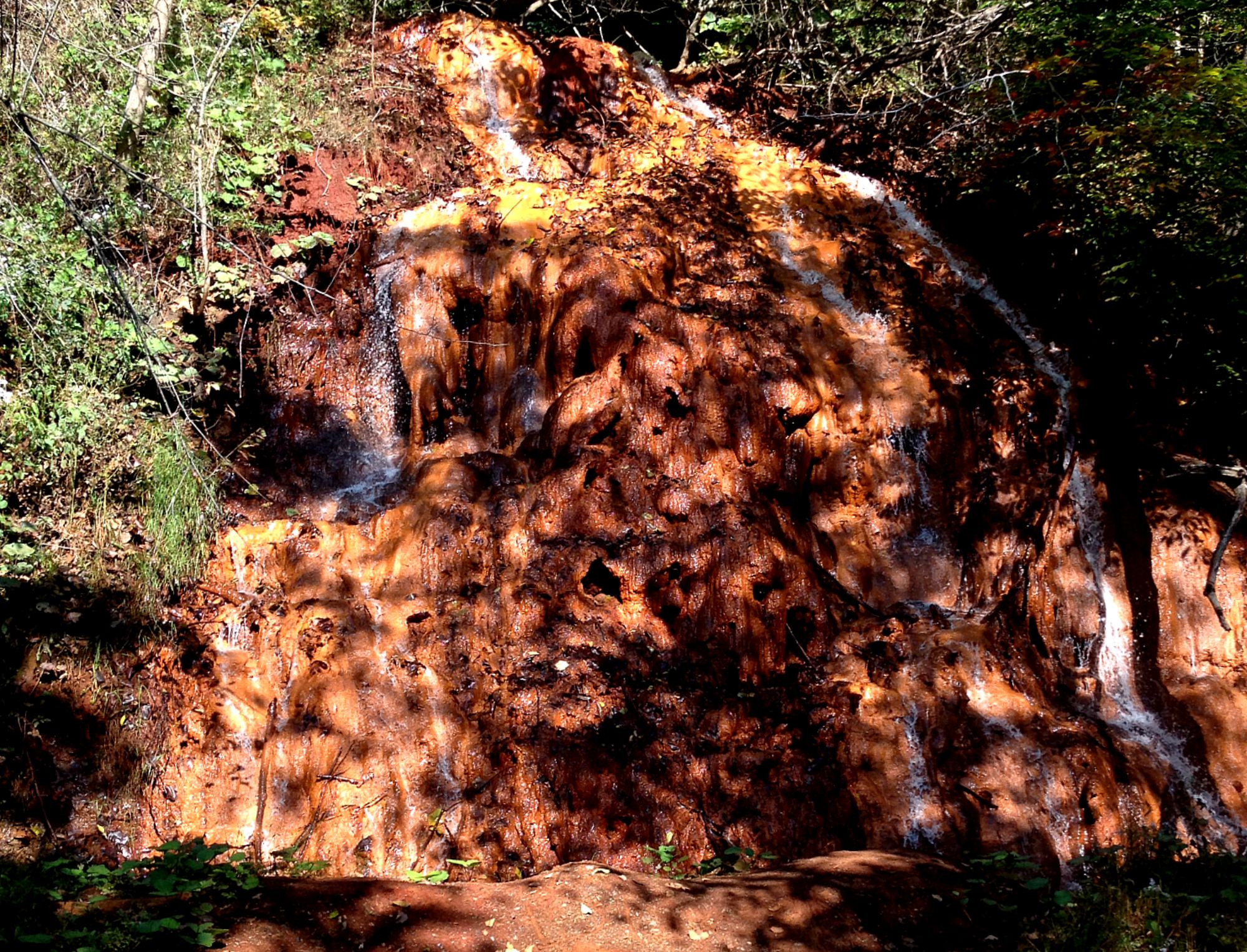 It was the first time that I’ve had a chance to ride the whole trail, and even though it was straight and flat, it was pretty neat. There’s all sorts of stuff to see, like this cancerous looking acid mine drainage waterfall: