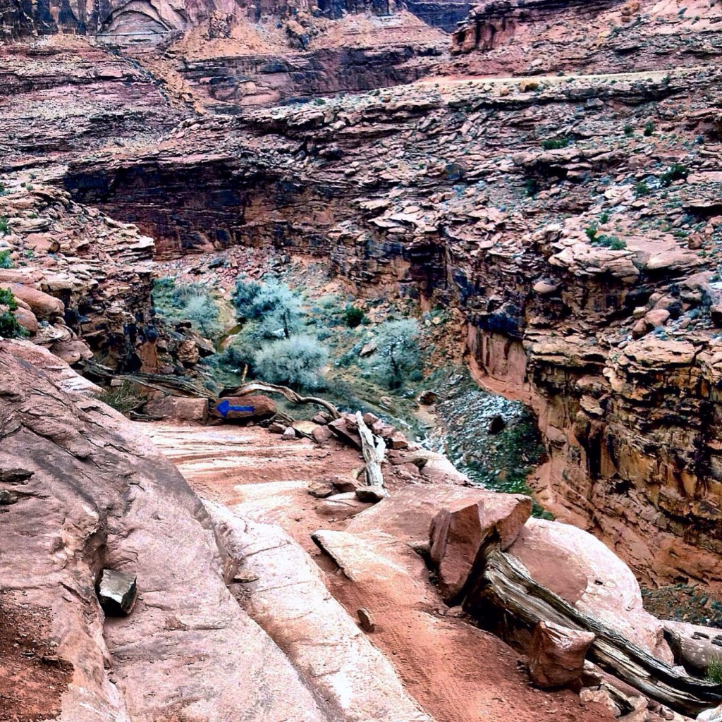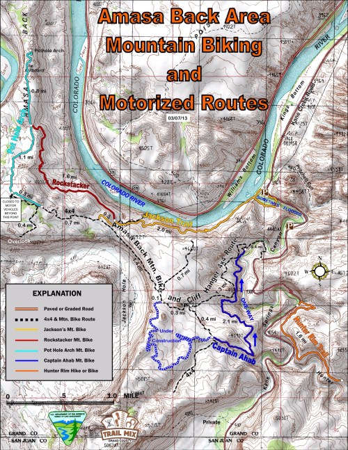 The trail kind of parallels the old Clif Hanger Trail on Amasa Back. The first day we were in town, I rode almost all of the trails on that mesa- Clif Hanger, to Rock Stacker, out to Pothole Arch, then down Ahab.