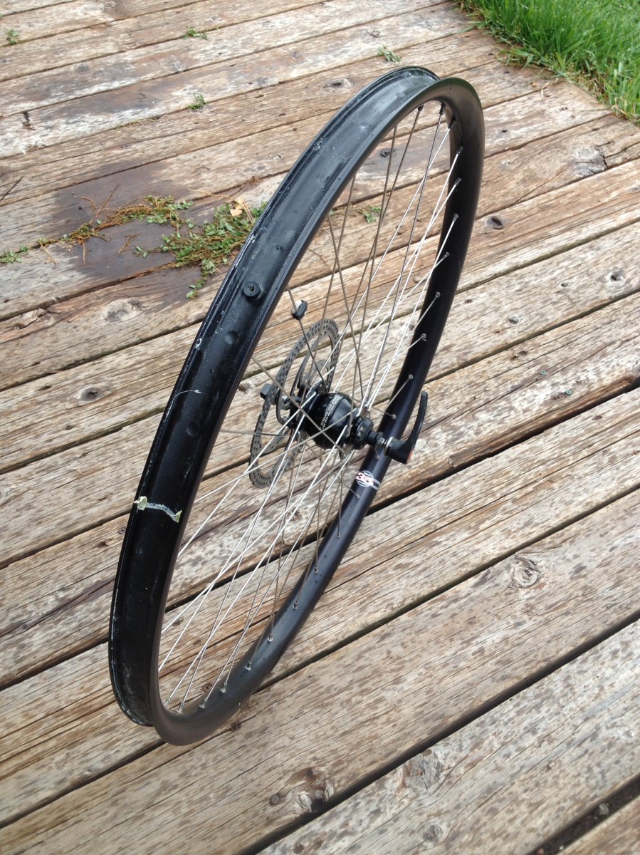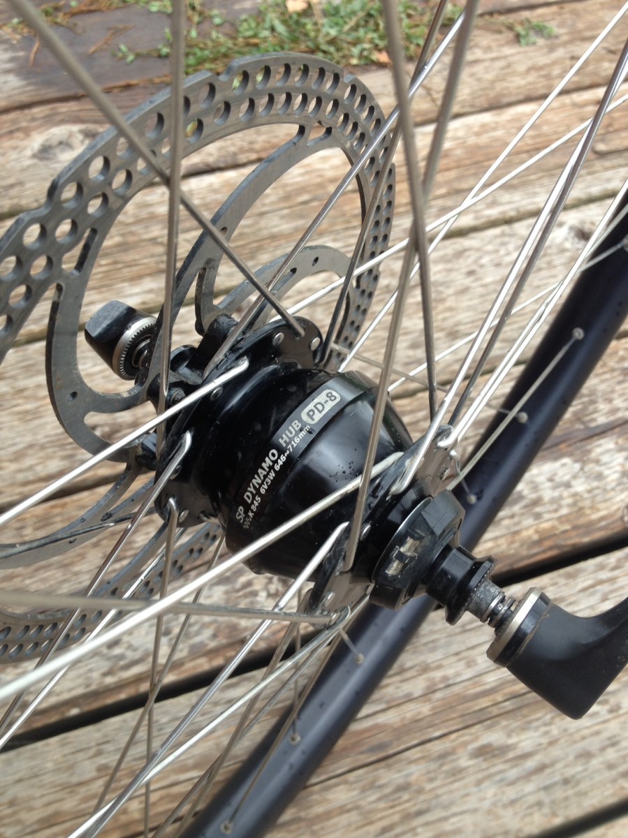 - Front wheel: Surly Ultra New hub, Marge Lite, Sapim Race spokes. Also hand built.