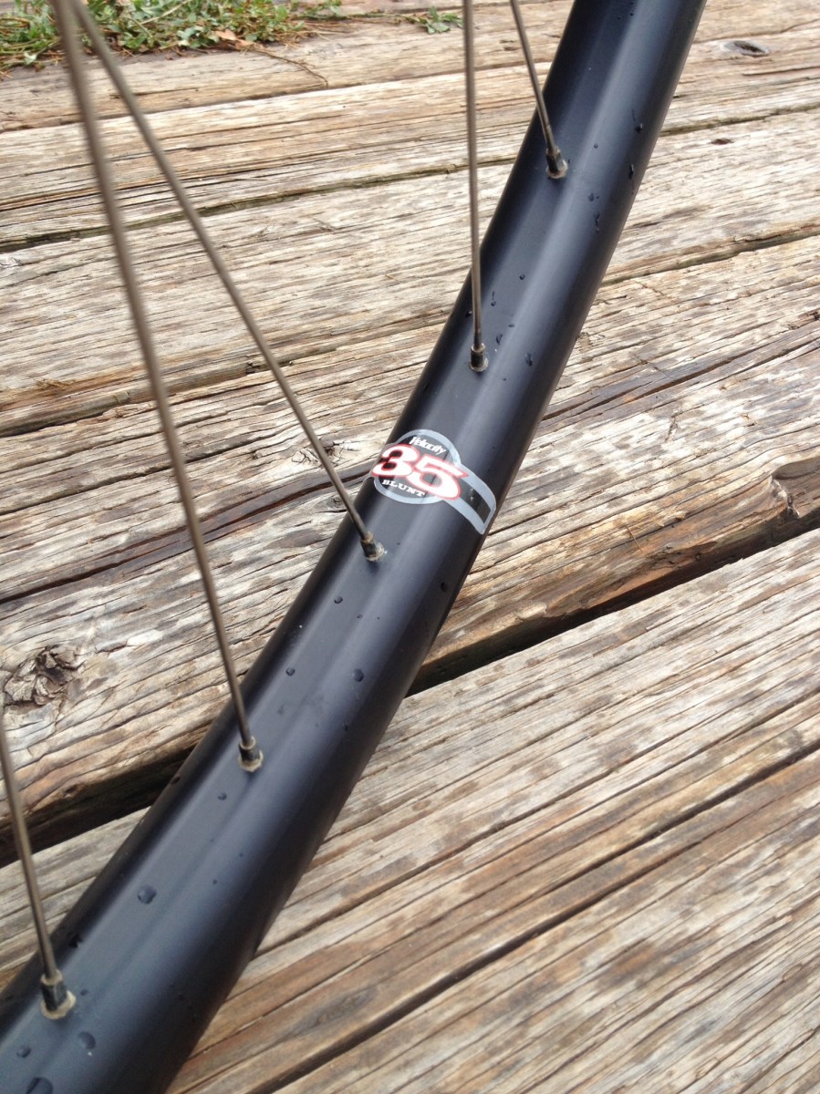 - Shutter Precision PD8 hub, Velocity Blunt 35 29er rim, Sapim race spokes. Hand built