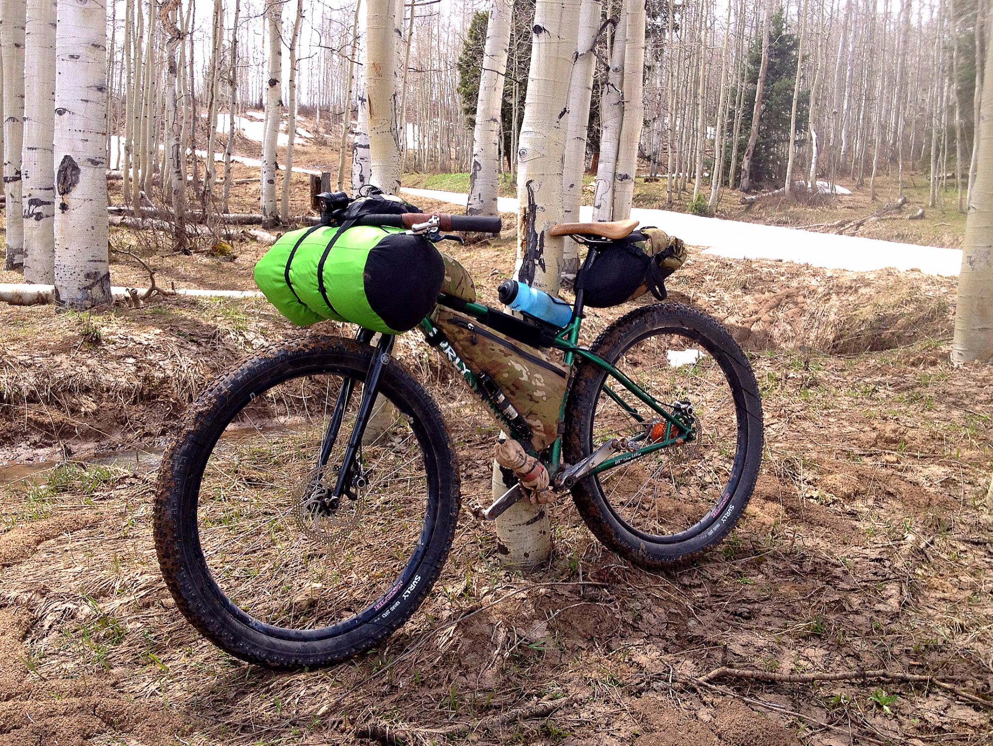 All my bags were by Oveja Negra in Salida. They’re beautifully made bags, but suffered the same fate as every other set of bags that I saw out there- the gritty mud in the first week busted everybody’s zippers, and overloaded, wet seat packs banged into back tires when the road was rough.