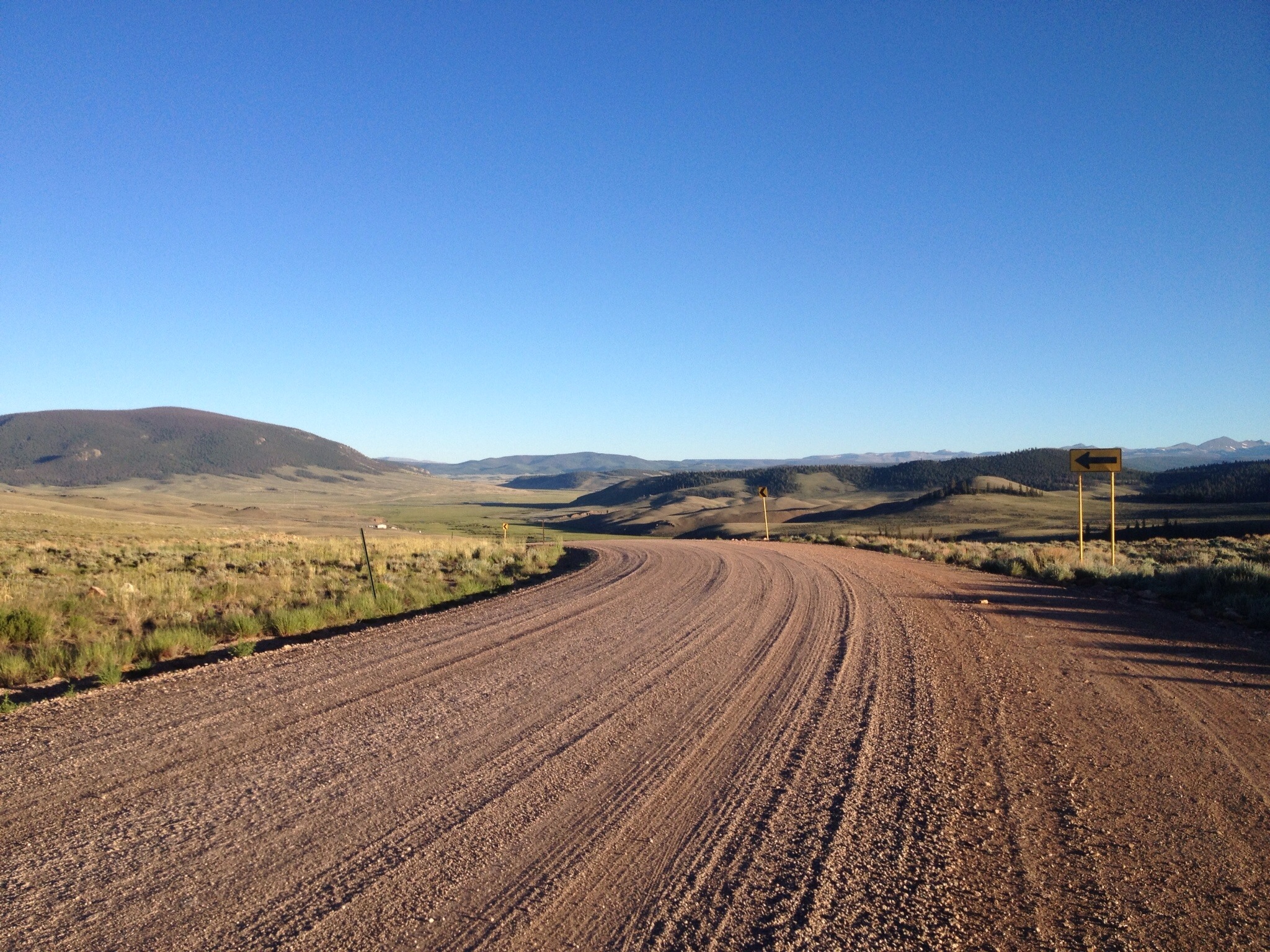 But mostly, it was worse than it should have been. The route left the mountains, and stuck to valley floors on endless ranch roads as wide as a four lane hi-way. Straight lines, washboard, big headwinds. Miserable. I love Colorado- that’s why I live here, so maybe I was just expecting better. But I certainly wasn’t expecting hundreds of miles of this, stuff that made me wonder if I’d ever left Wyoming: