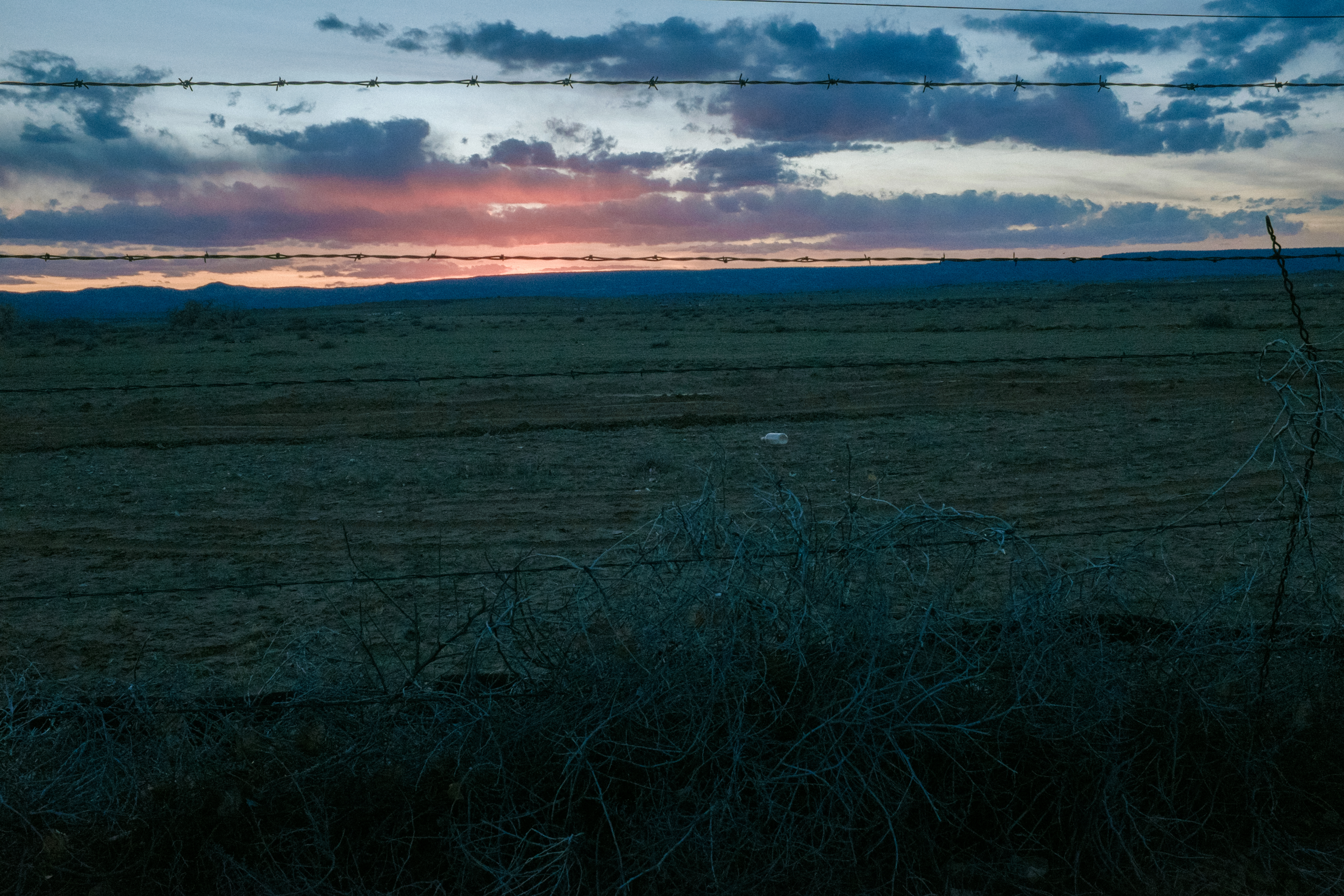 Man it’s beautiful here. Pastel desert sunset, waving grass, tough scrubby trees. A border patrol truck rips past us, kicking up dust. I’m riding next to John.