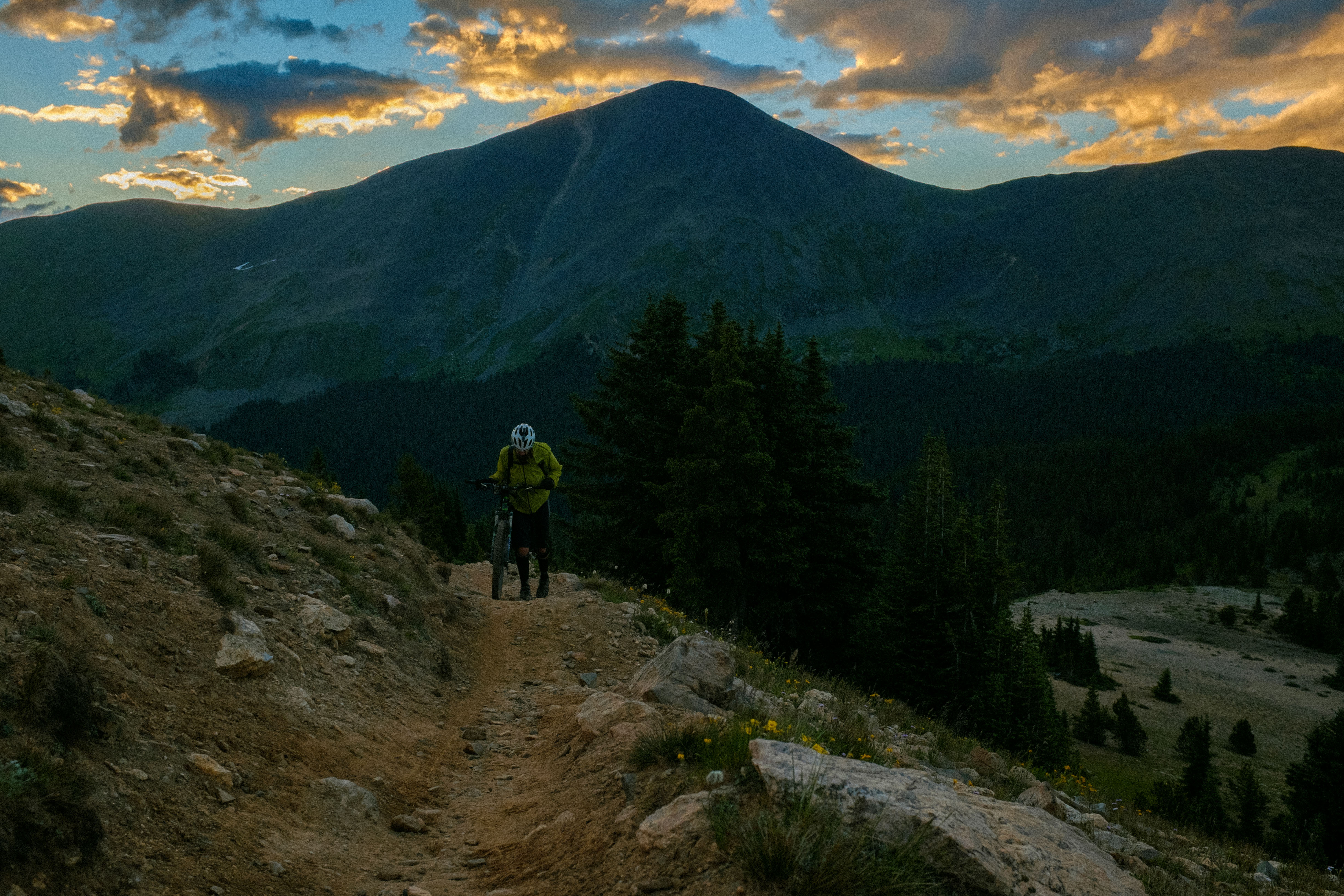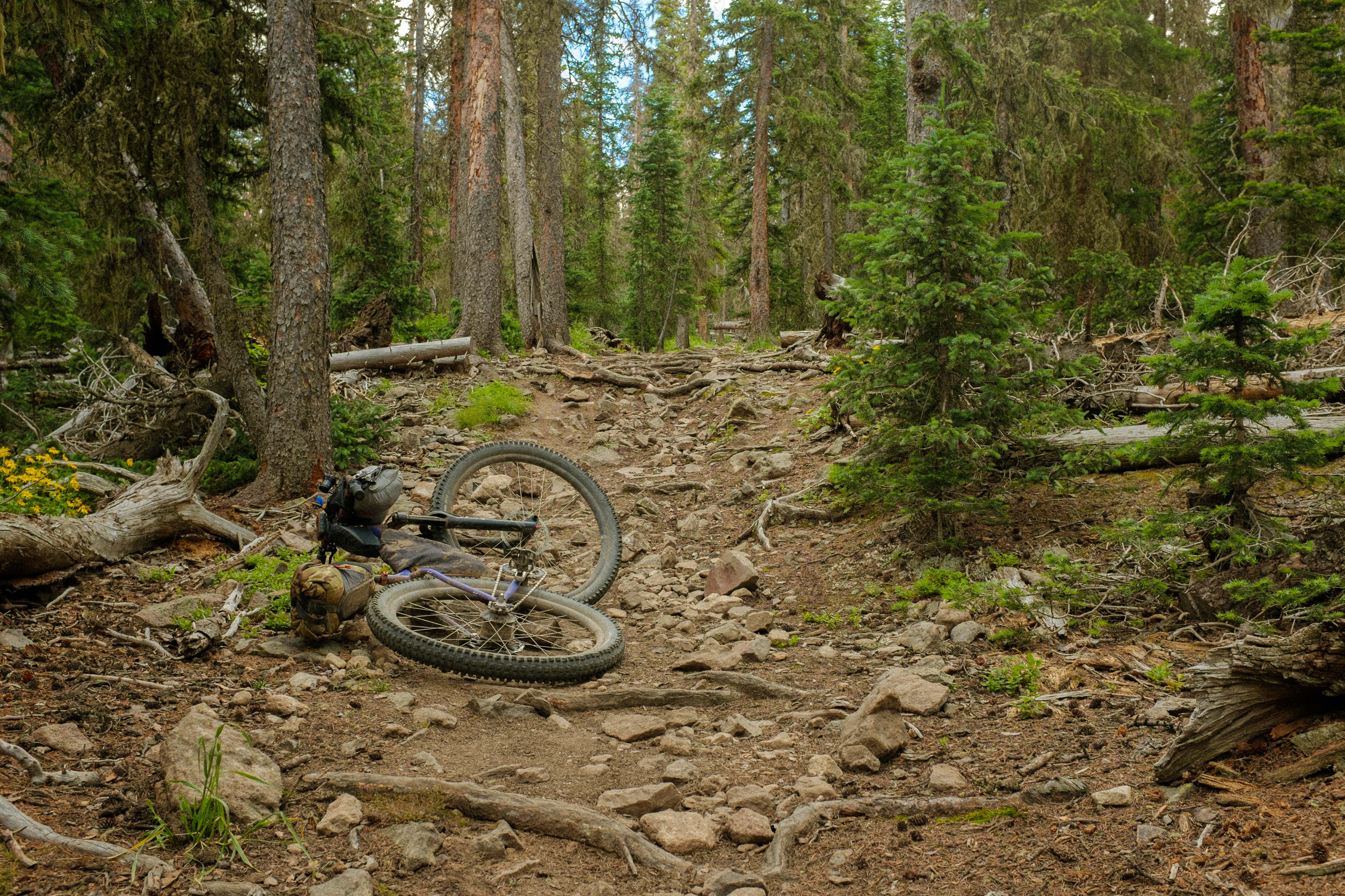 The first day out of Durango was the hardest day I’ve ever had on a bike, and starting without sleep probably didn’t help. Pass after pass after pass, hours of hiking, pressing a heavy bike forward over rocks. Awesome in the real meaning of the word, but so hard. I had to bivy at eight- 16 hours and only 75 miles in. I was certain I’d get to Silverton the next morning and quit.