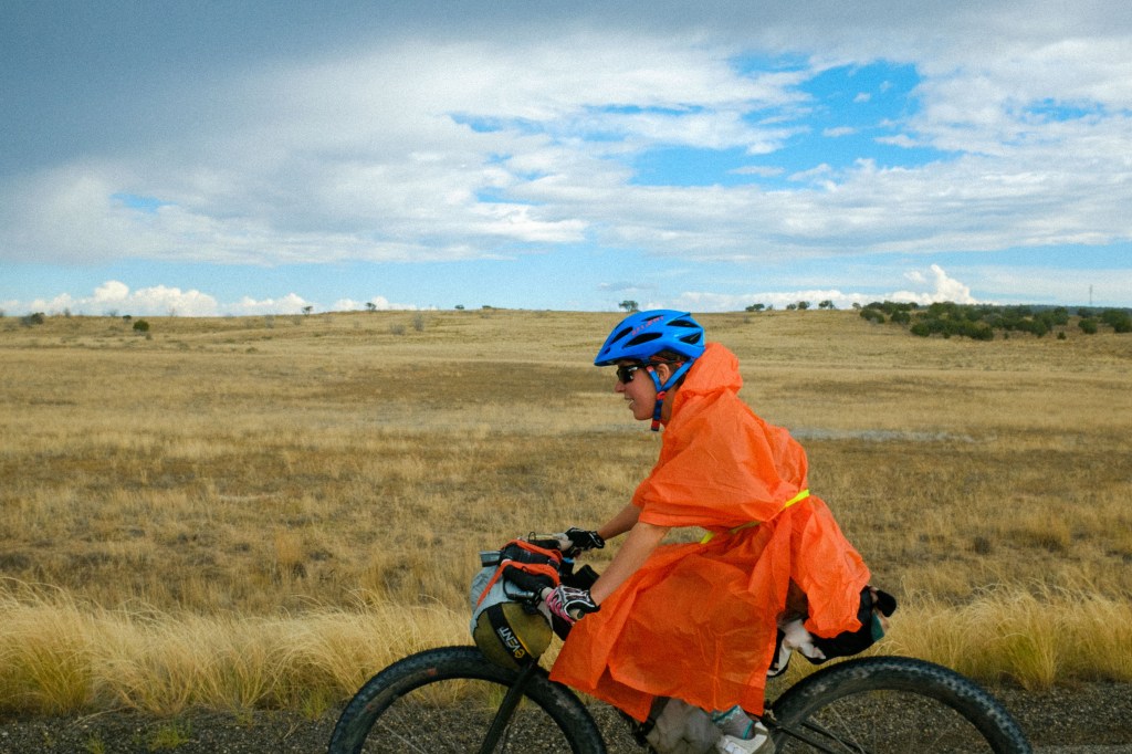 I stop to laugh and take a picture of her billowing pumpkin suit so that I can make fun of her on the internet when we get home, just like I would any other riding partner.