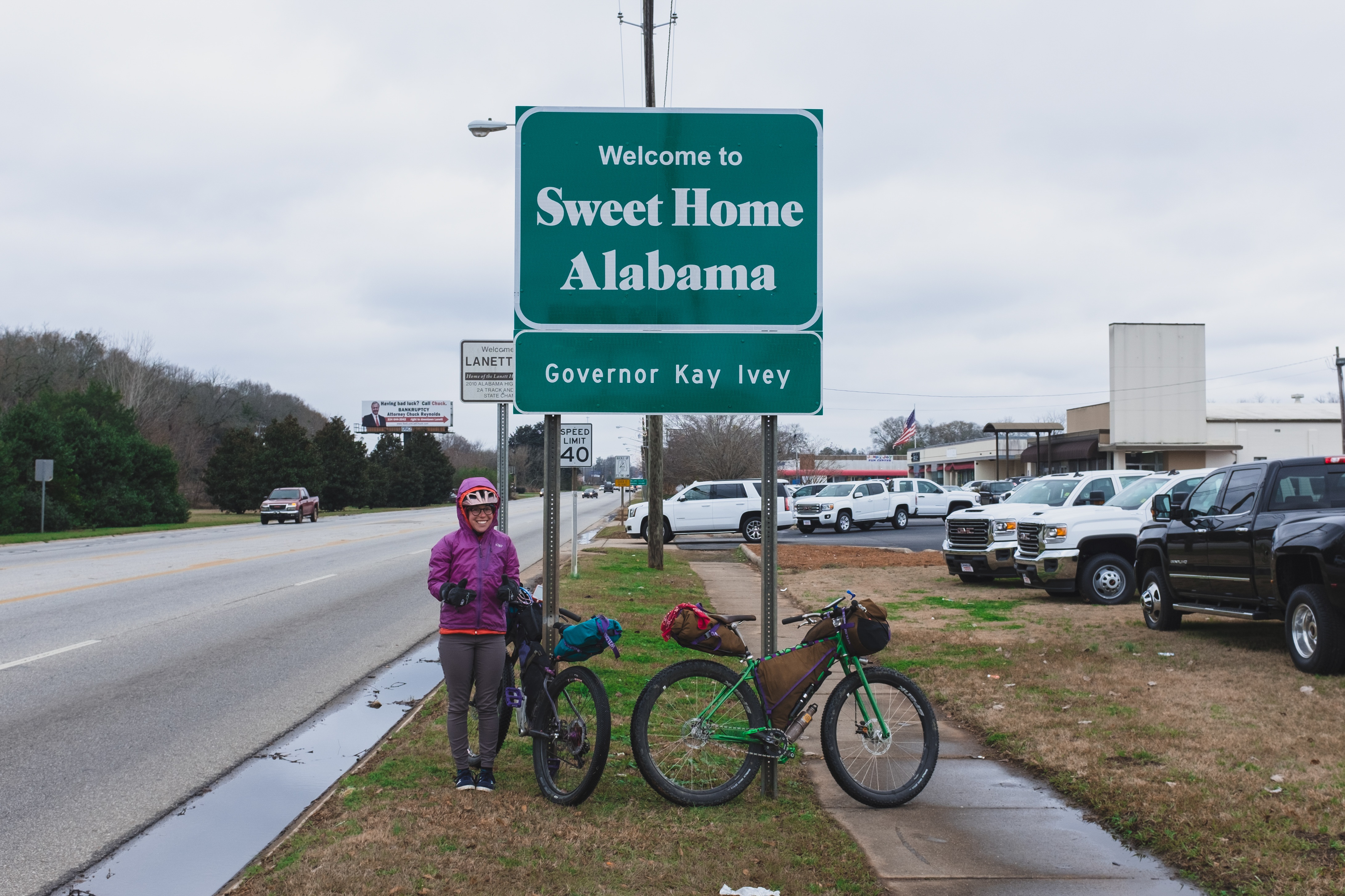 “Get the fuck off the road you dumb piece of shit!” an ignorant bitch yells out her car window. Alabama plates. Boy, I hope that’s not a sign of things to come. All the way through South Carolina and Georgia, we haven’t had any problems with drivers.