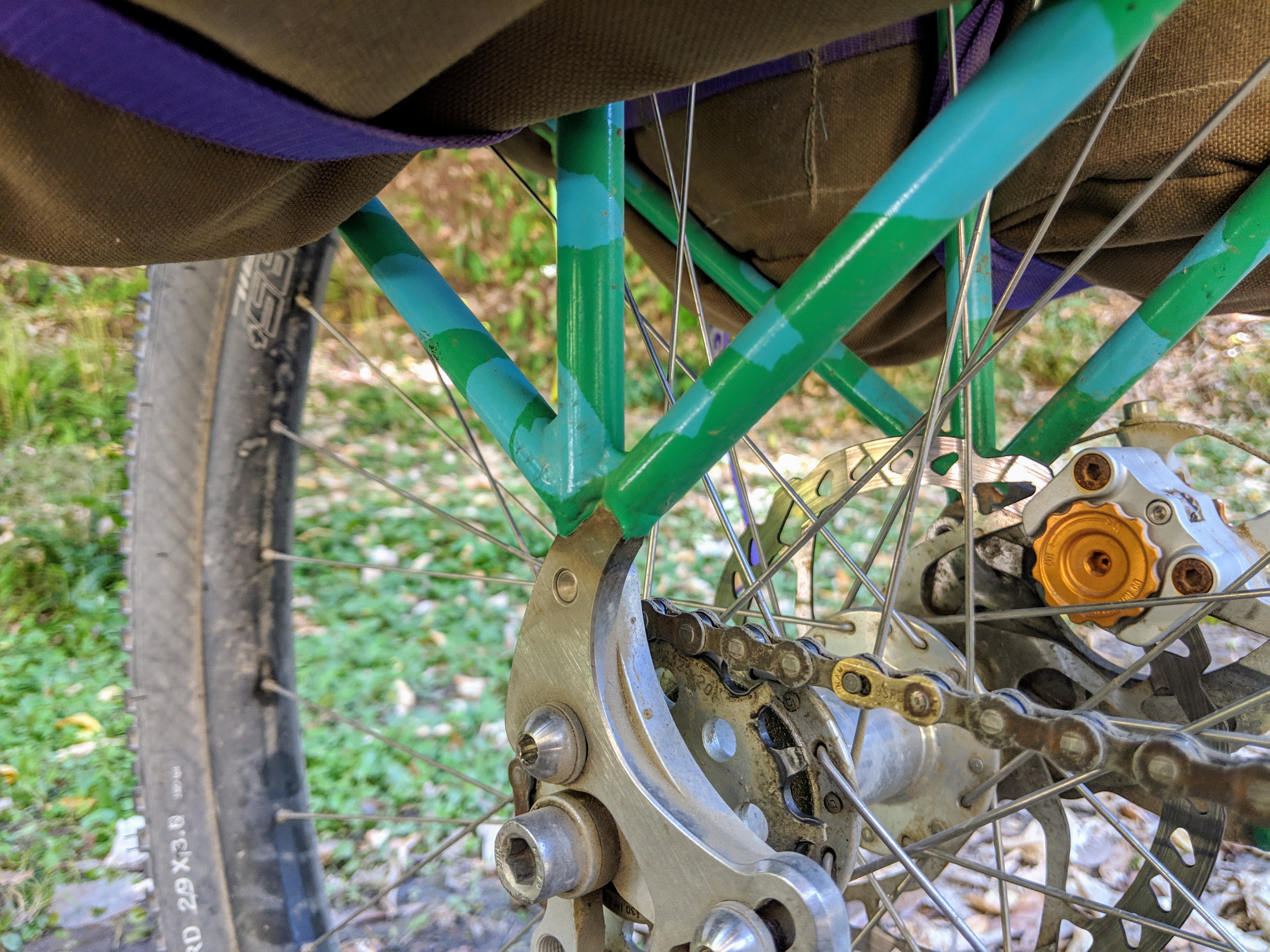 1. I definitely like single speeding better, but yeah I would use a Rohloff again, that’s why I got this bike with guides for one. They do suck on single track (I could never get over the weight and the slow engagement in some gears). But I think they’re great for a long trip that has the potential to be real muddy or dirty. At the same time, derailleur drivetrains are pretty awesome now. Anyway, I sold my Rolhoff because it was black and I wanted a shiny silver one