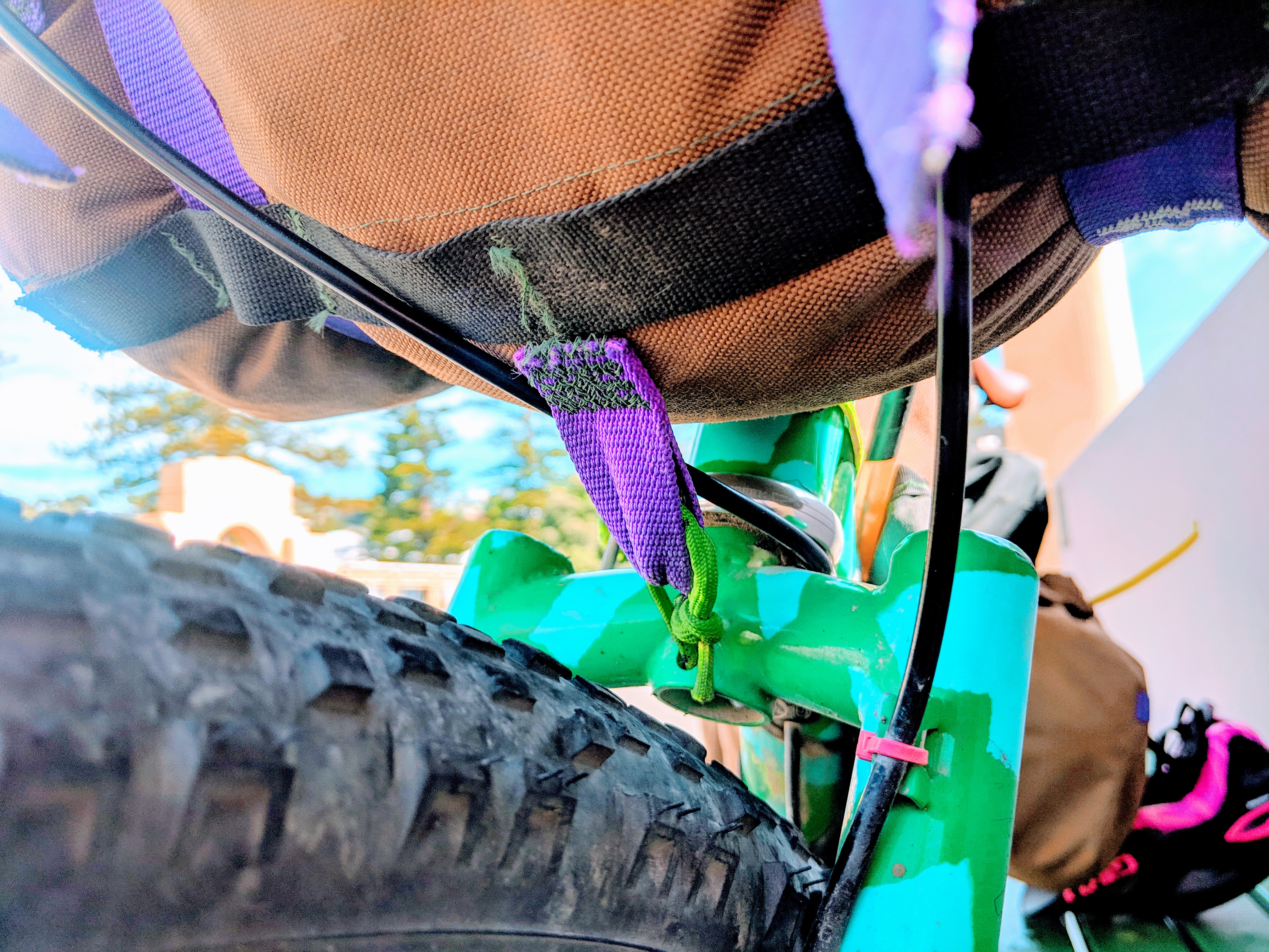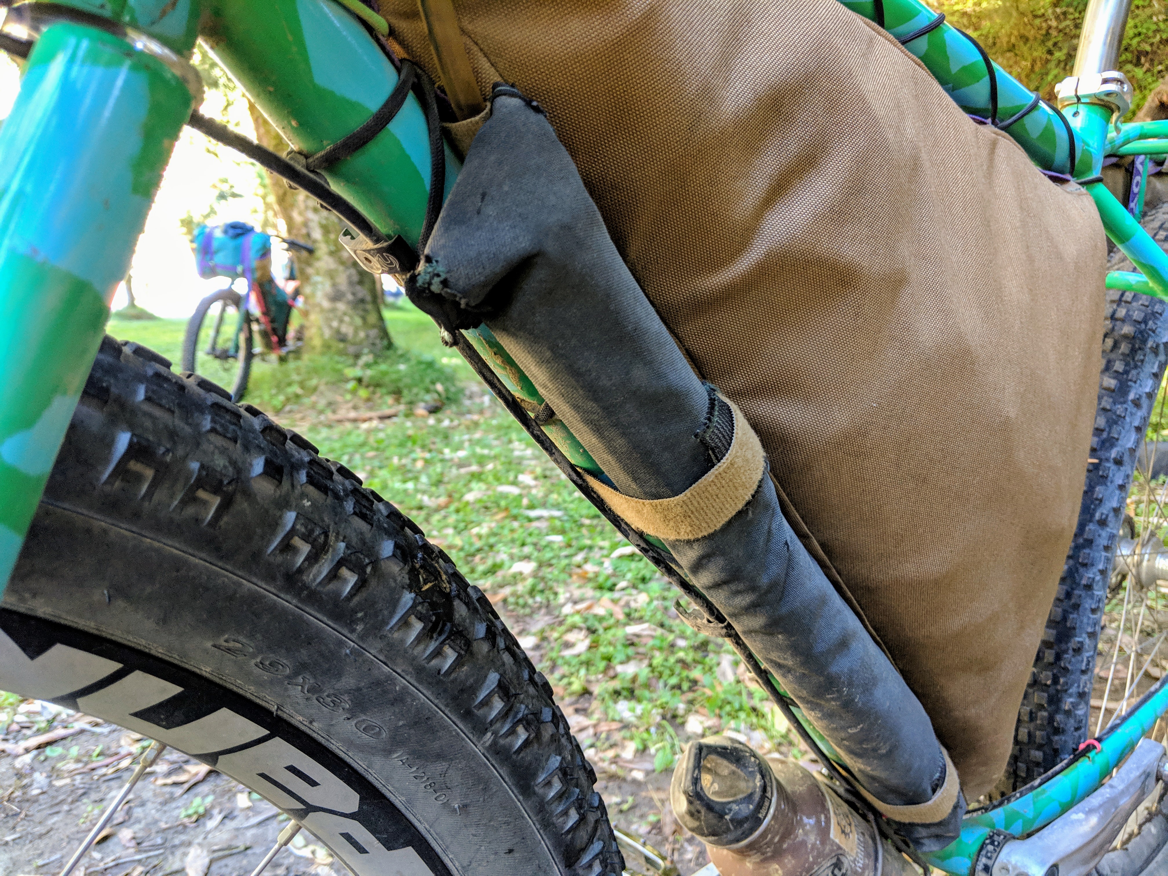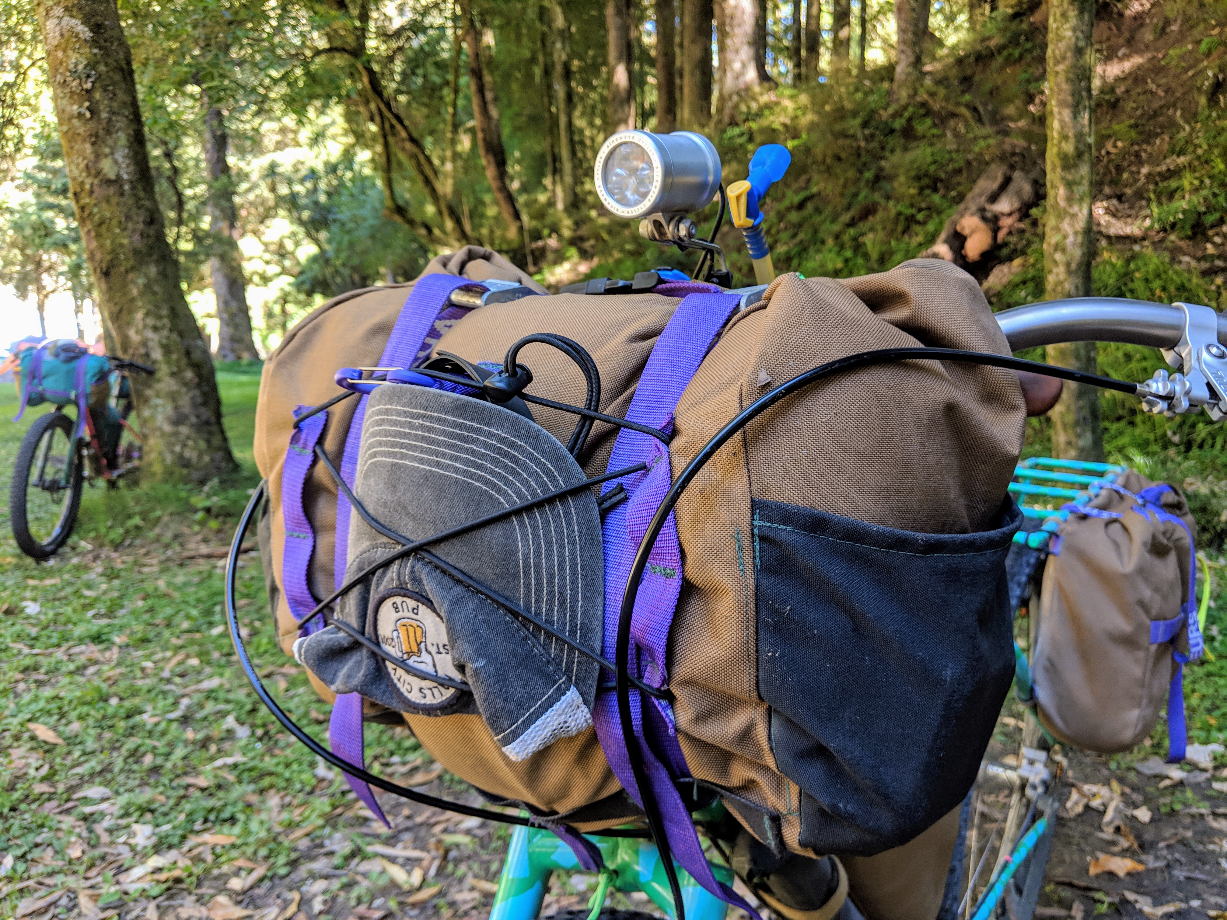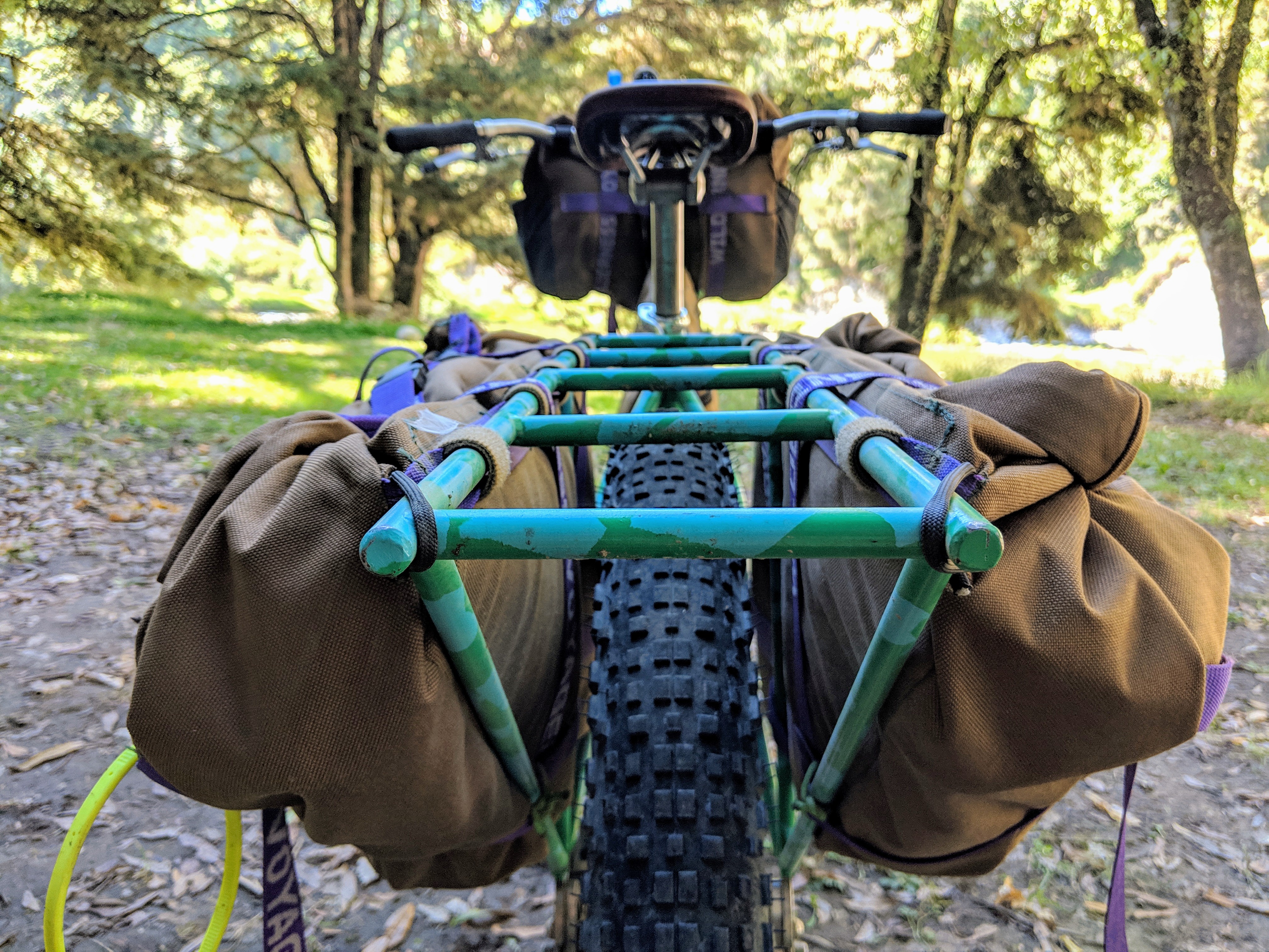 But the best thing is that it rides pretty much the same with a load as it does unloaded. On other bikepacking set ups I’ve had, the weight starts to get really noticeable when you get two or three days worth of food on the bike. There’s just no way to keep an overloaded seatbag from bouncing around.
