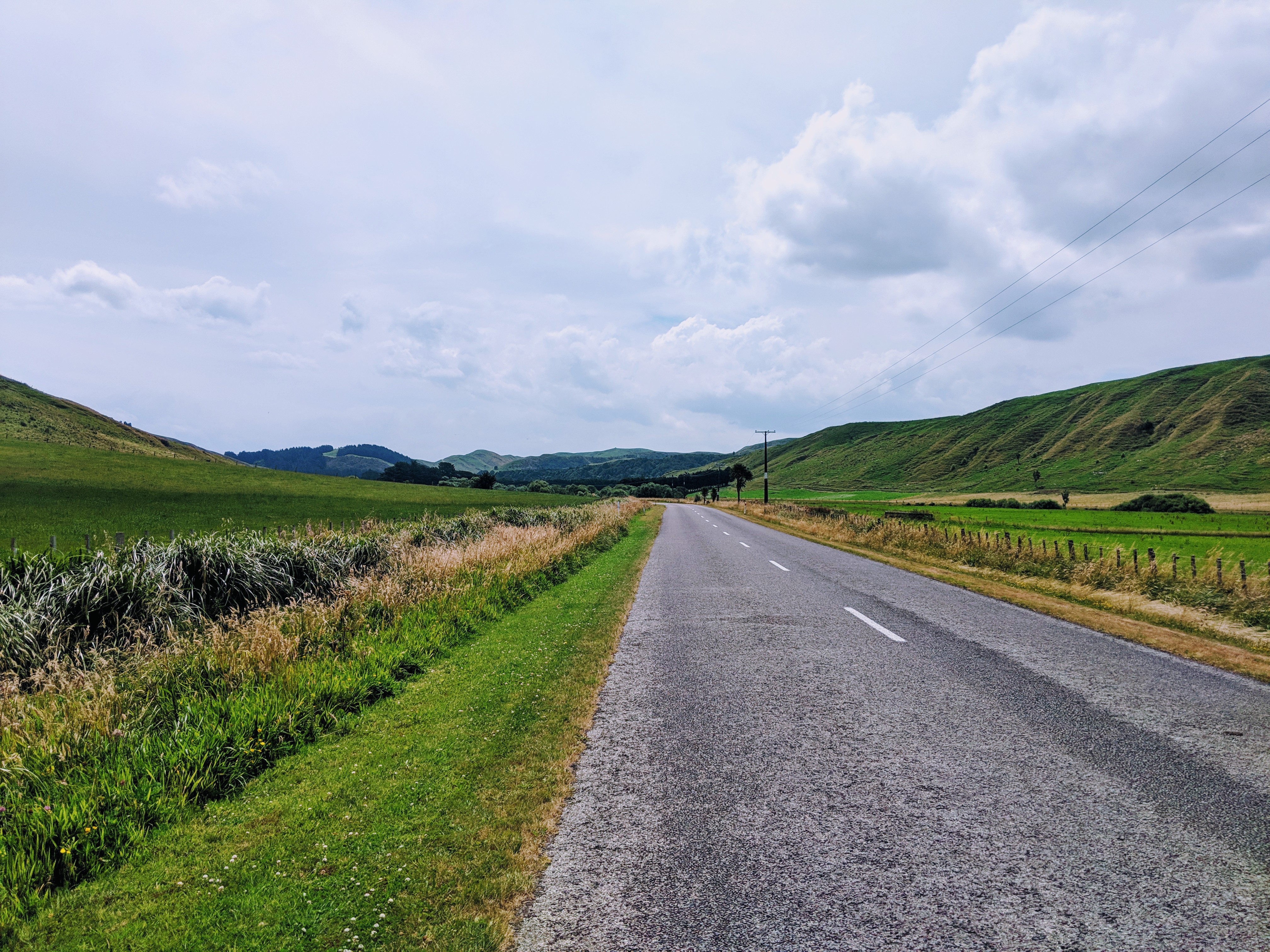 The rest of the ride down highway 50 is quiet, rolling, full of sheep and green fields. It might be the quietest road in New Zealand, we’re only passed by one or two cars all day.