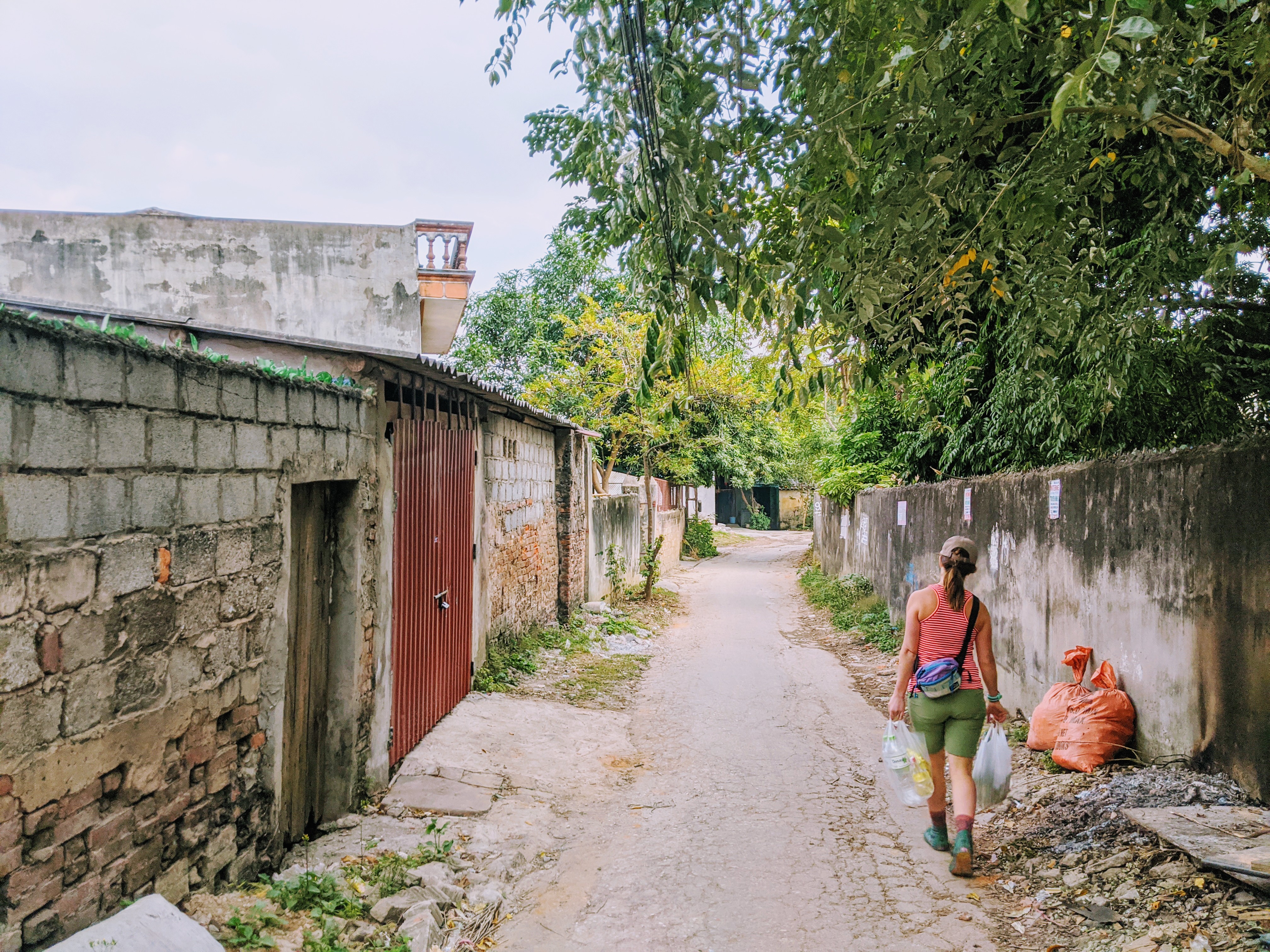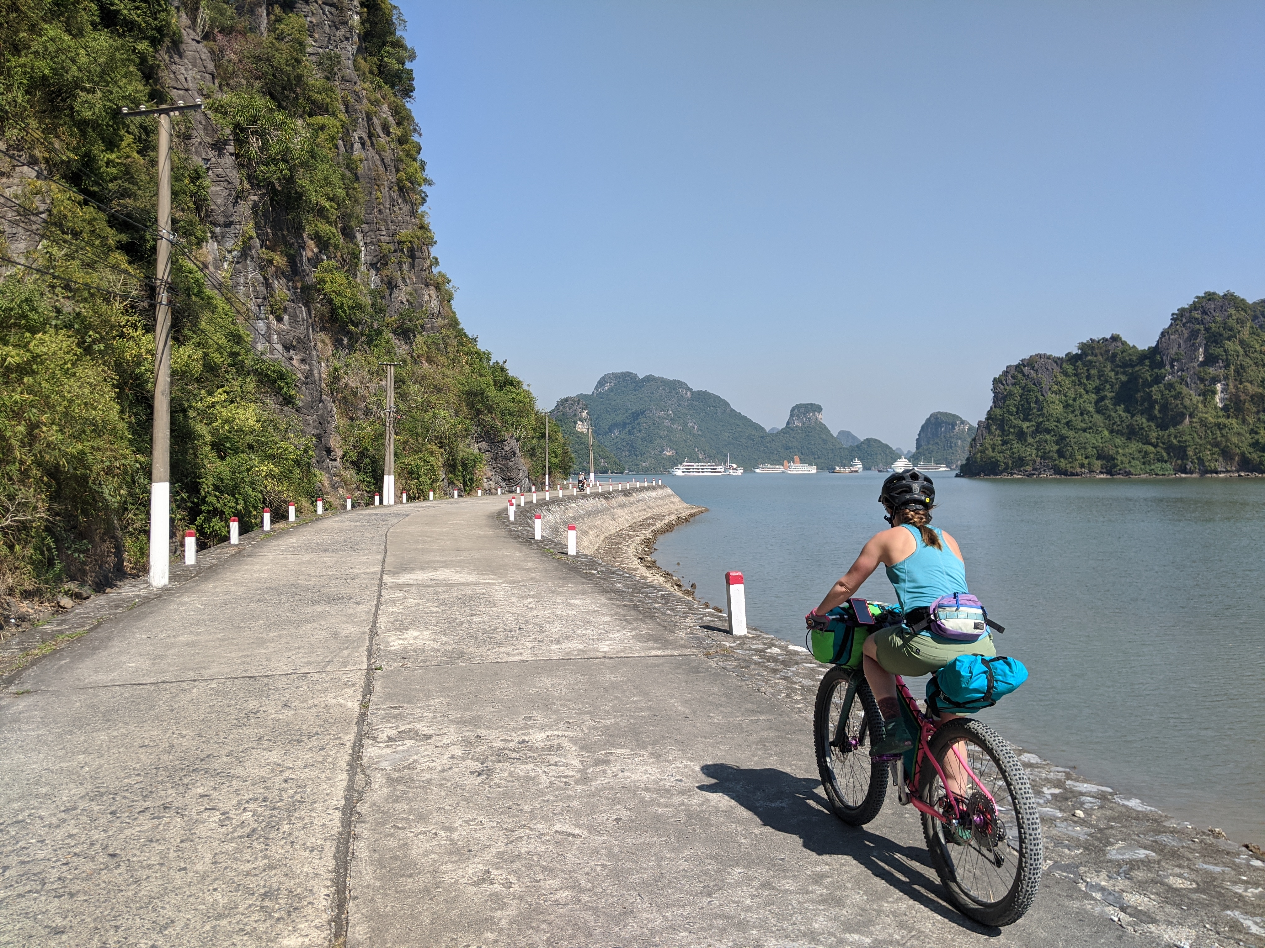 I’m doing the paper boy up the super steep street in Cat Ba Town, to the hotel Colleen picked which is like five feet below the very very top.