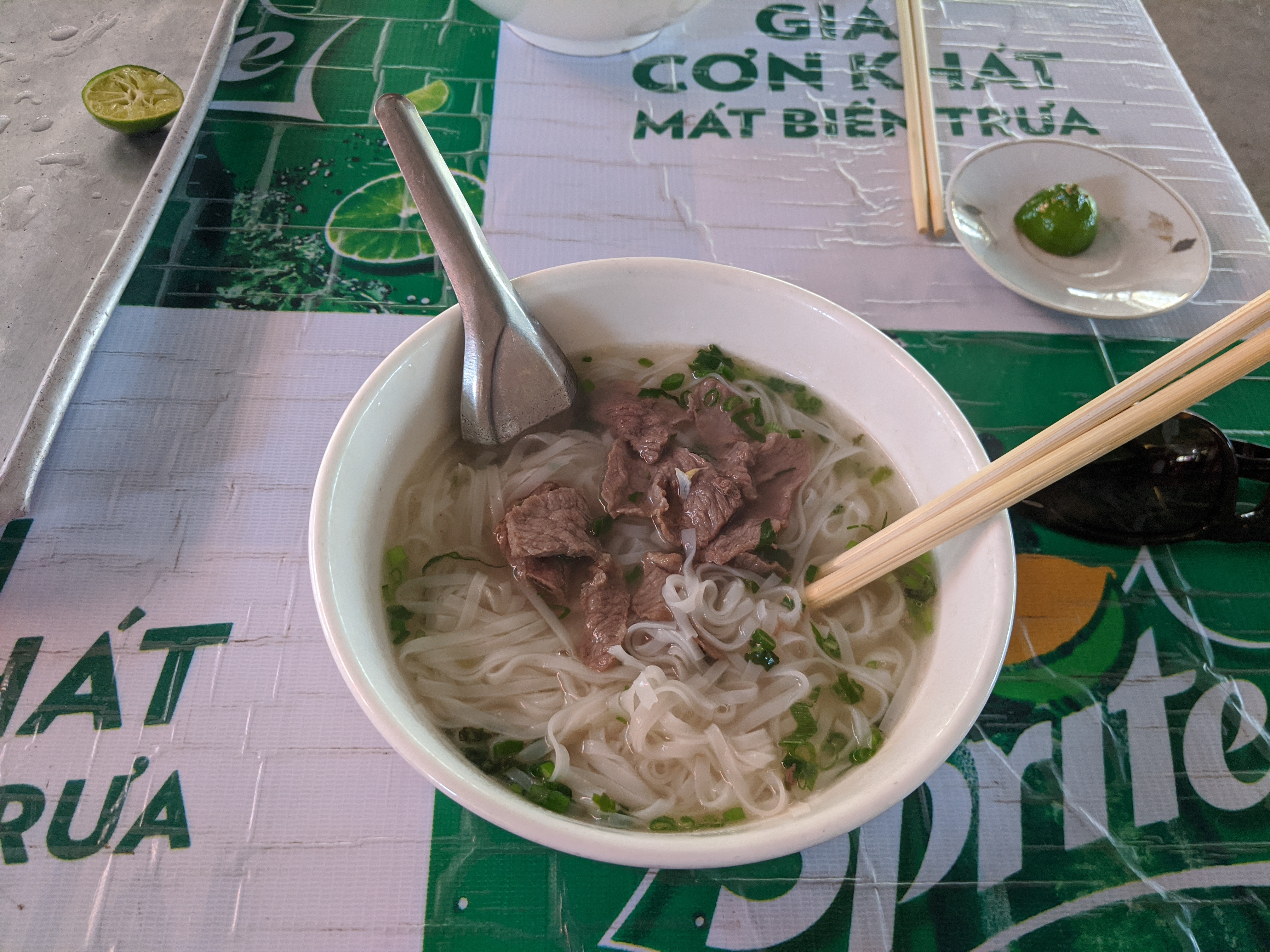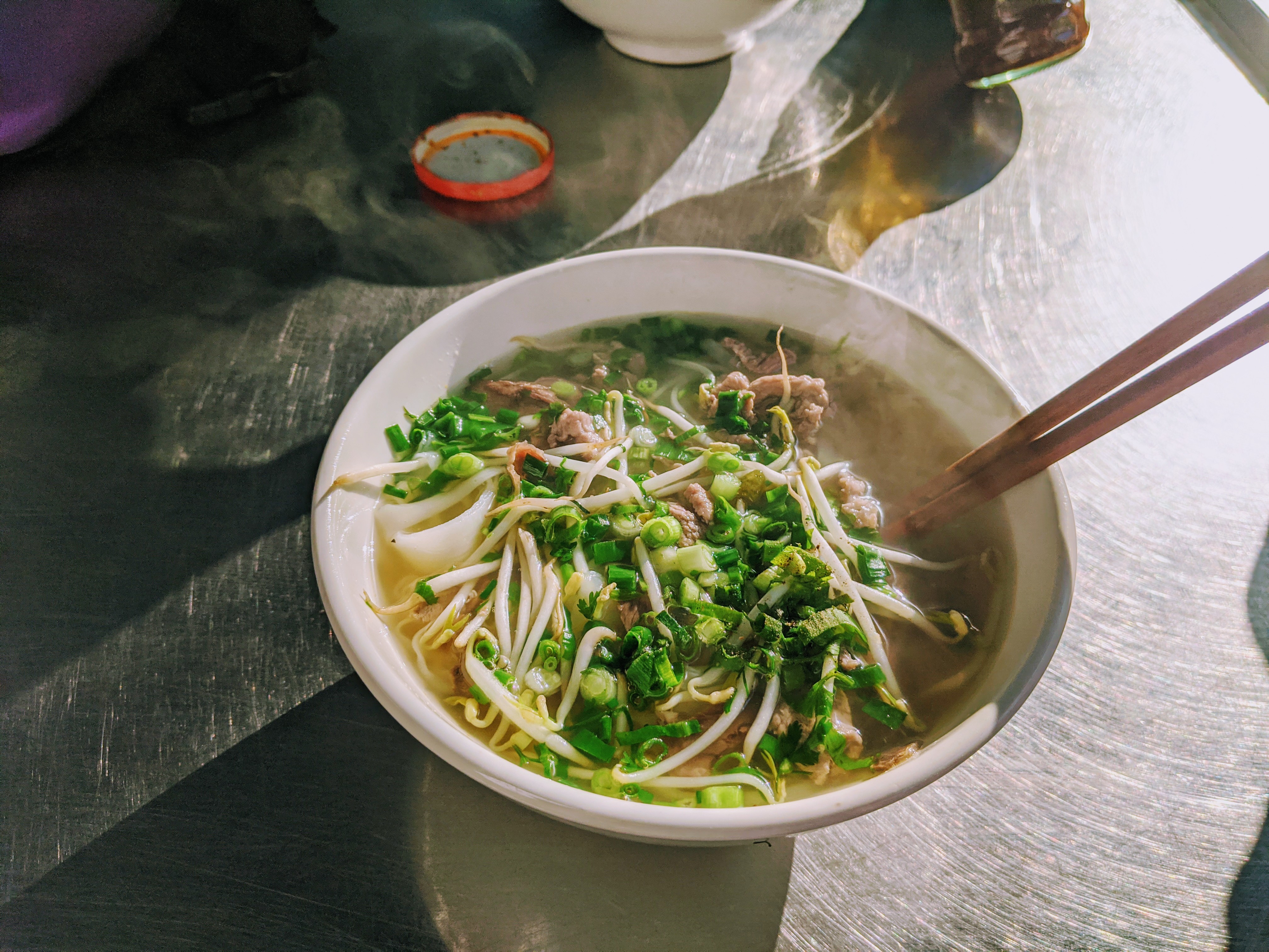 Pho, which is a pretty basic rice noodle soup usually with a little beef, is pronounced faa. And when I say “faa” to try to order some pho, people look at me like I’m deranged. Then they say “Faa?”, I nod vigorously, yes please, then they ladel some out.