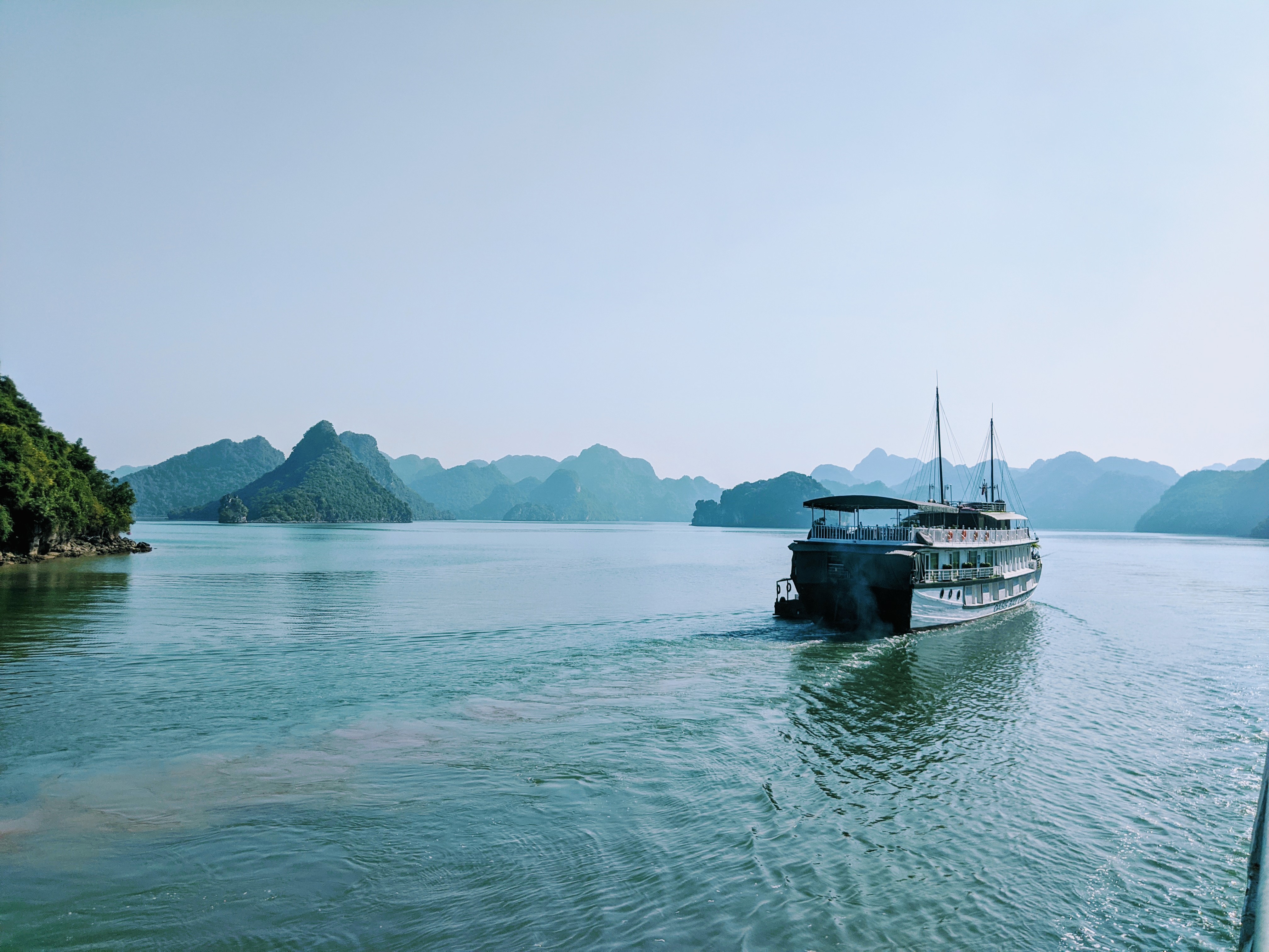 The ferry across Ha Long Bay is like five bucks, and crazy beautiful. Giant limestone lumps in turquoise water.