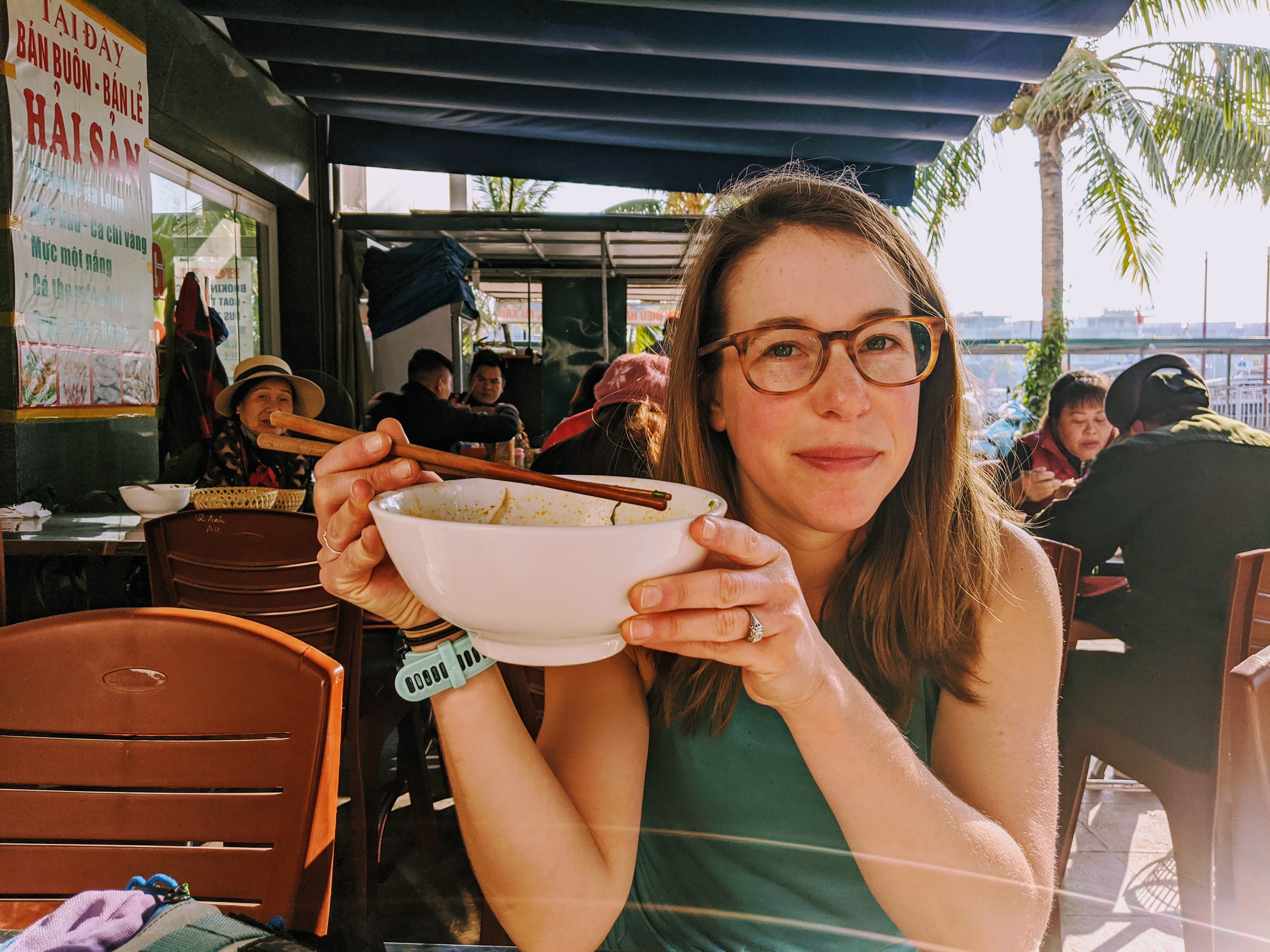The next day we get our first rolling hills, then end up in the village of An Chau. When we go out to find some dinner, we realize immediately that we’re not actually experts on the Vietnamese restaurant scene.