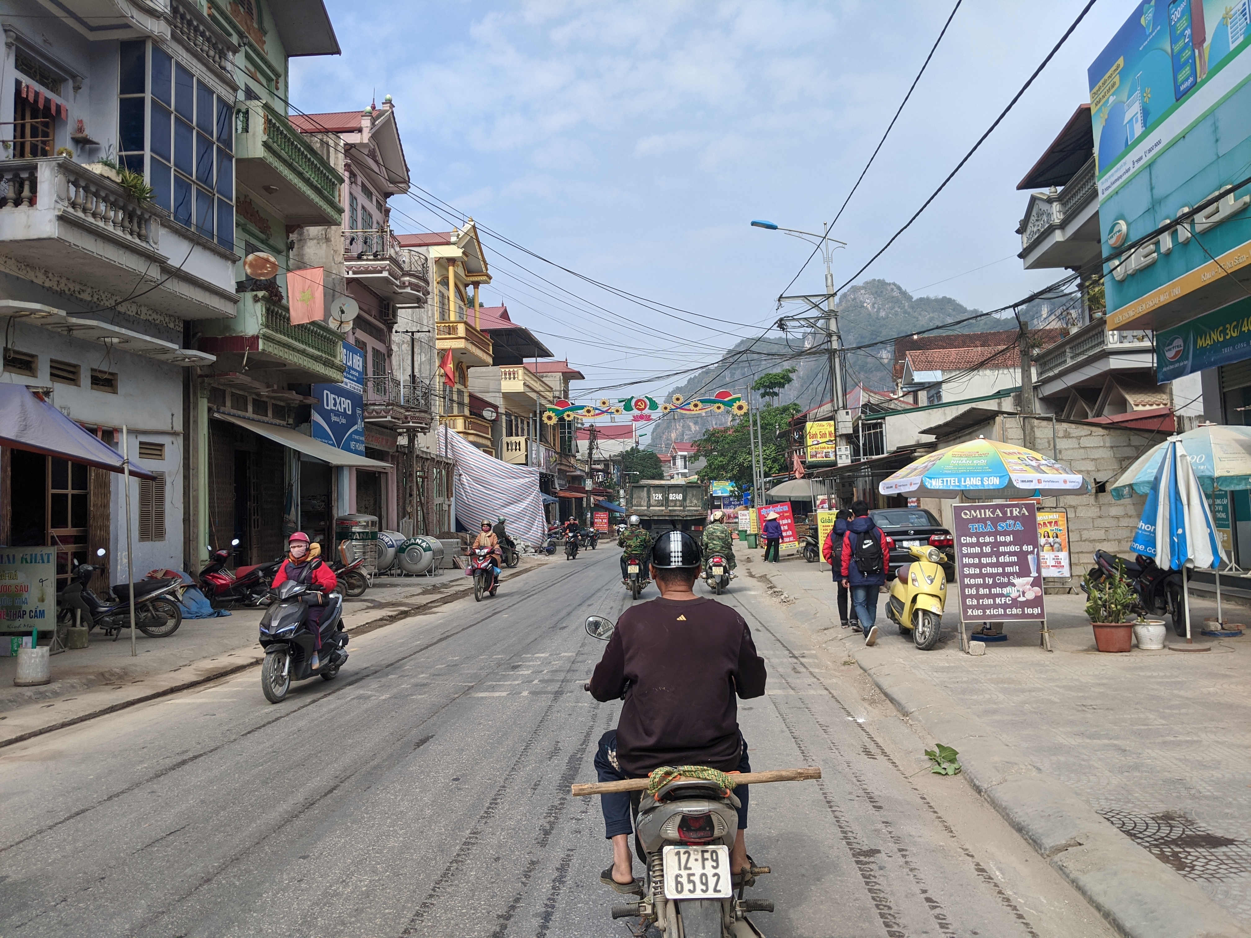 My little rule about chairs and plastic stools doesn’t hold, because in this town there are no chairs. Or restaurants. Very few little stools, and nobody seems to be eating. We walk around dejected, hungry and confused for a while, until we finally find a place on a side street with some awesome bun dau.