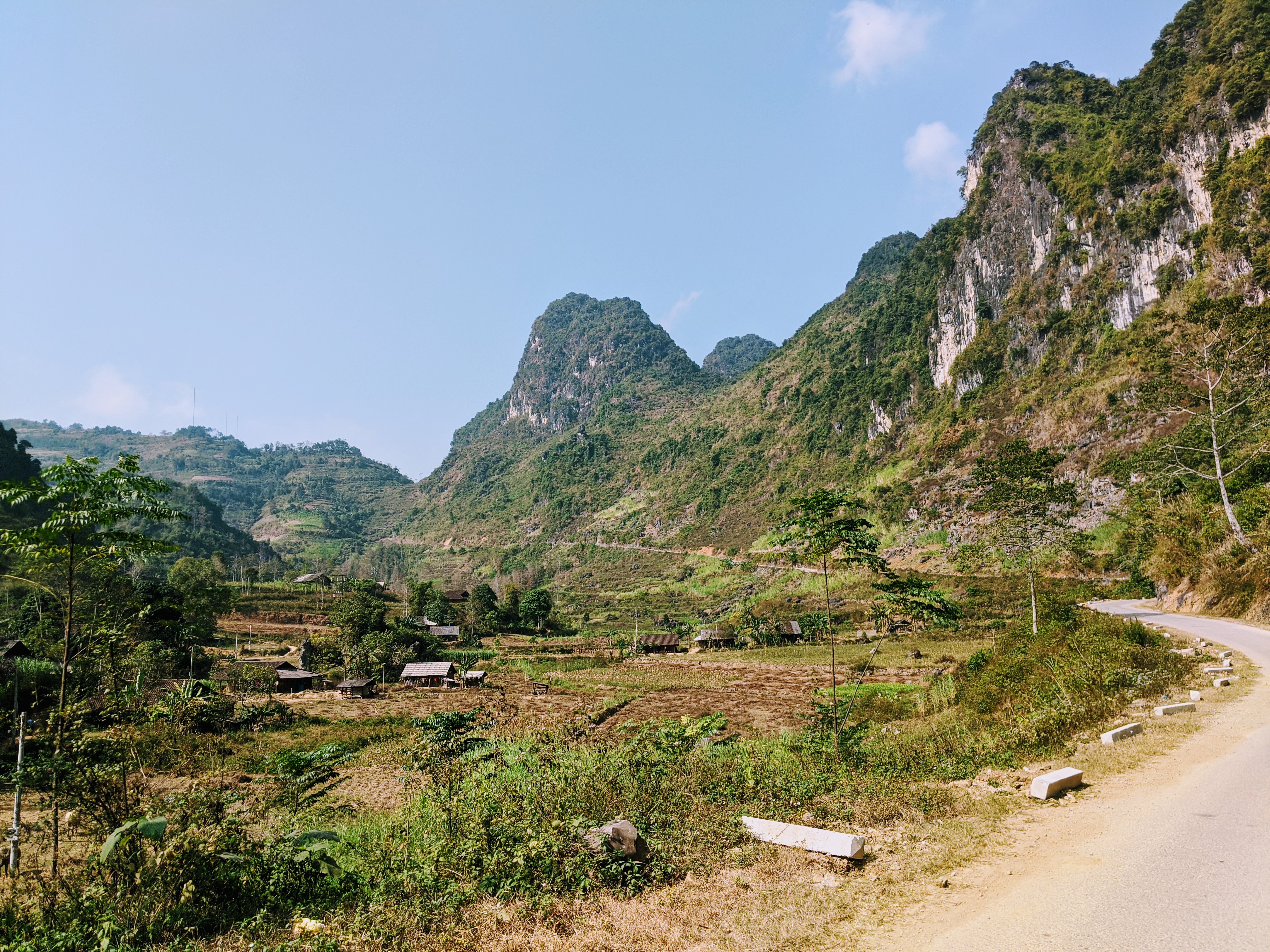 Couple more days on the road, then we take a day off in Cao Bang, where there’s a nice guesthouse owned by a Vietnamese couple that also run an English school in town. Big family dinner, which is like six different dishes in little bowls. Fill your bowl with rice, then grab the other food with chopsticks, put it in your rice and eat.