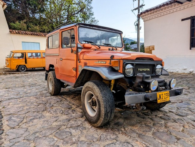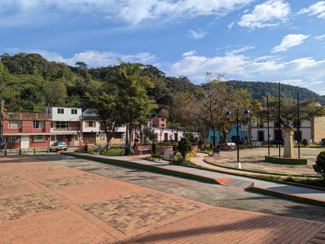 After five days of riding we took a day off in Villa de Leyva, Colombia’s “most intact colonial town” (I’ve read that phrase in about a dozen different places). It’s really cool, terracotta roofs, whitewashed buildings, giant rough cobblestone streets so chunky they’re hard to ride on 2.6 tires. The biggest plaza I’ve ever seen, probably 150 washing machines/ 20 buses/ four football fields big (in American standard units).