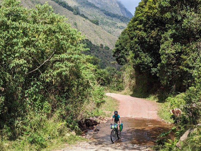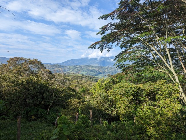 He’s undeterred, follows for five miles just trotting along happily. Colleen yells at him a couple more times, he won’t leave. Cute guy, would be a great trail dog, but it’s just not going to work out in this situation. He’s Colombian, we’re Pennsylvanian, I’m pretty sure getting a dog visa is impossible and we’ve only known each other for half a day anyway.