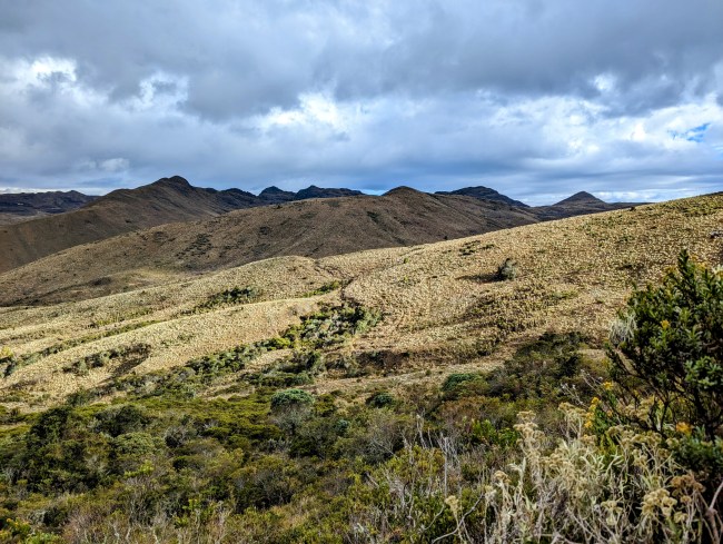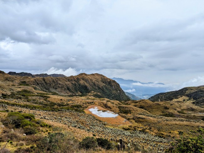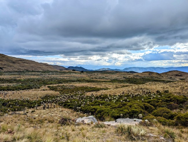 The páramos cover 1.7 percent of Colombia, but produce 85 percent of the drinkable water in the country. They’re big vegetable sponges that soak up all the rain and mist and slowly release it into rivers down the mountains.