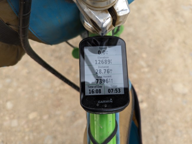 The climb is 14 miles long, 5500 vertical all in one shot. It’s gonna take at least four hours. We start pushing.