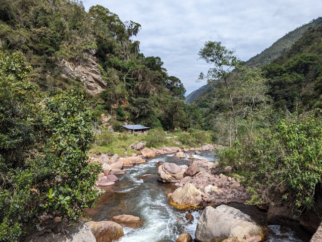 Thunder, louder than it should be, boosted by the echoes on the green steep rocky walls of the valley, pounding rain. Booming cumbia reggaeton mixes, yelling dudes, and fighting barking dogs compete with the storm to be the loudest thing on Friday night. I kinda wish I was at the town party, but I’m so beat I’m more glad to be inside, three floors up in this little hotel with the window cracked just listening.